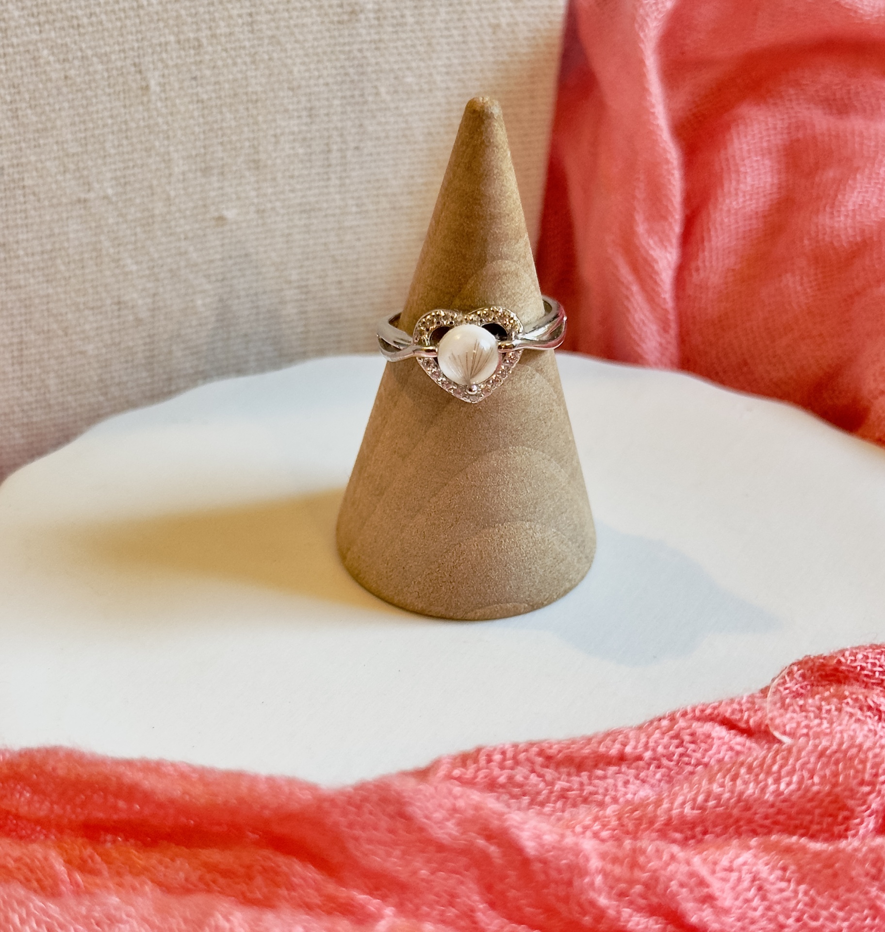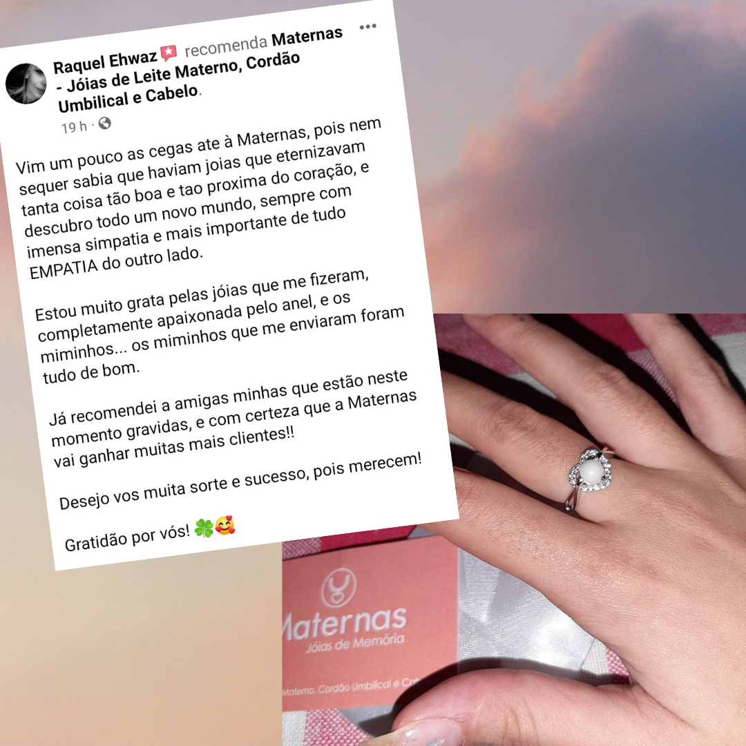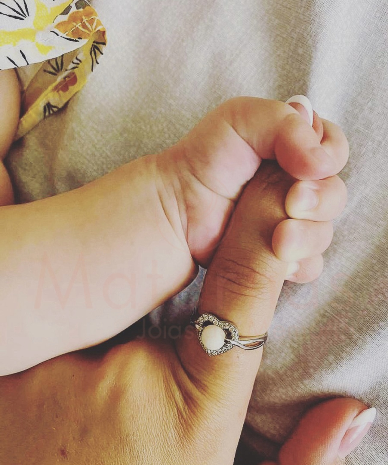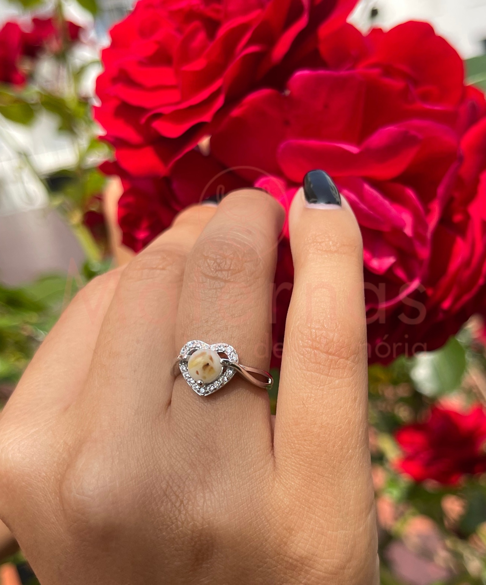 Anel ajustável, entrelaçado e em forma de Coração, com possibilidade de eternização de cordão umbilical ou cinzas de cremação.