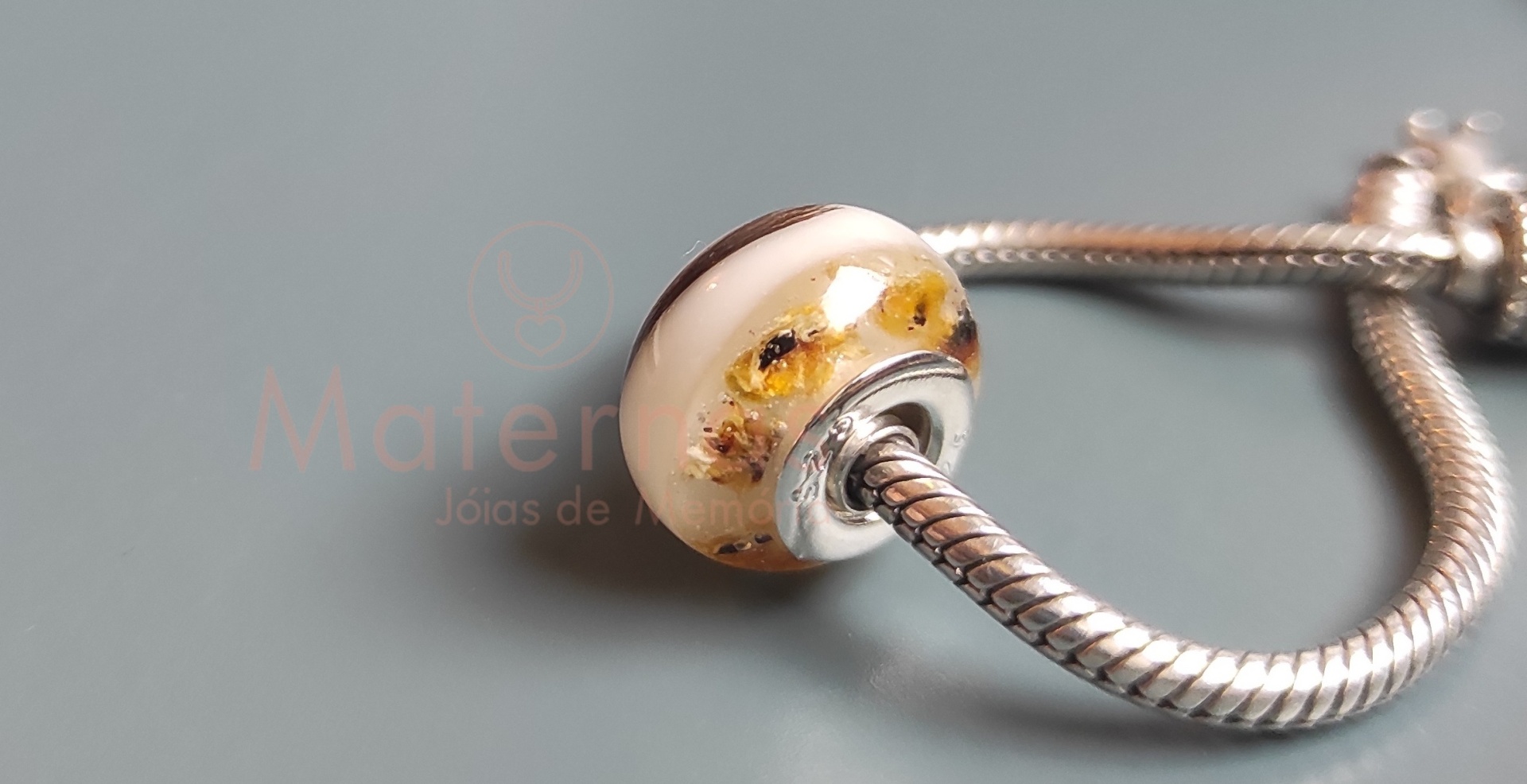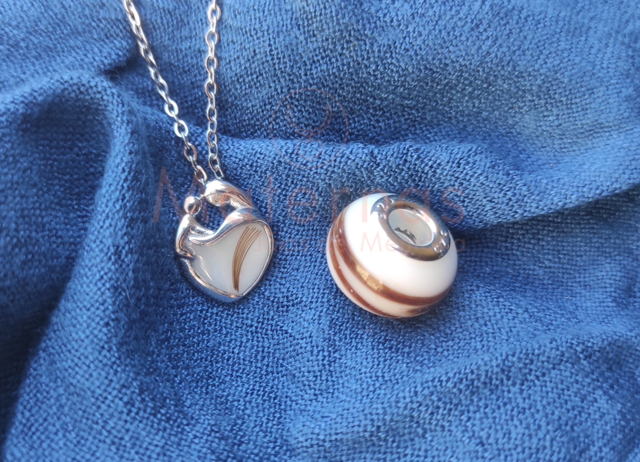 Berloque para pulseira ou fio, com eternização de leite materno.