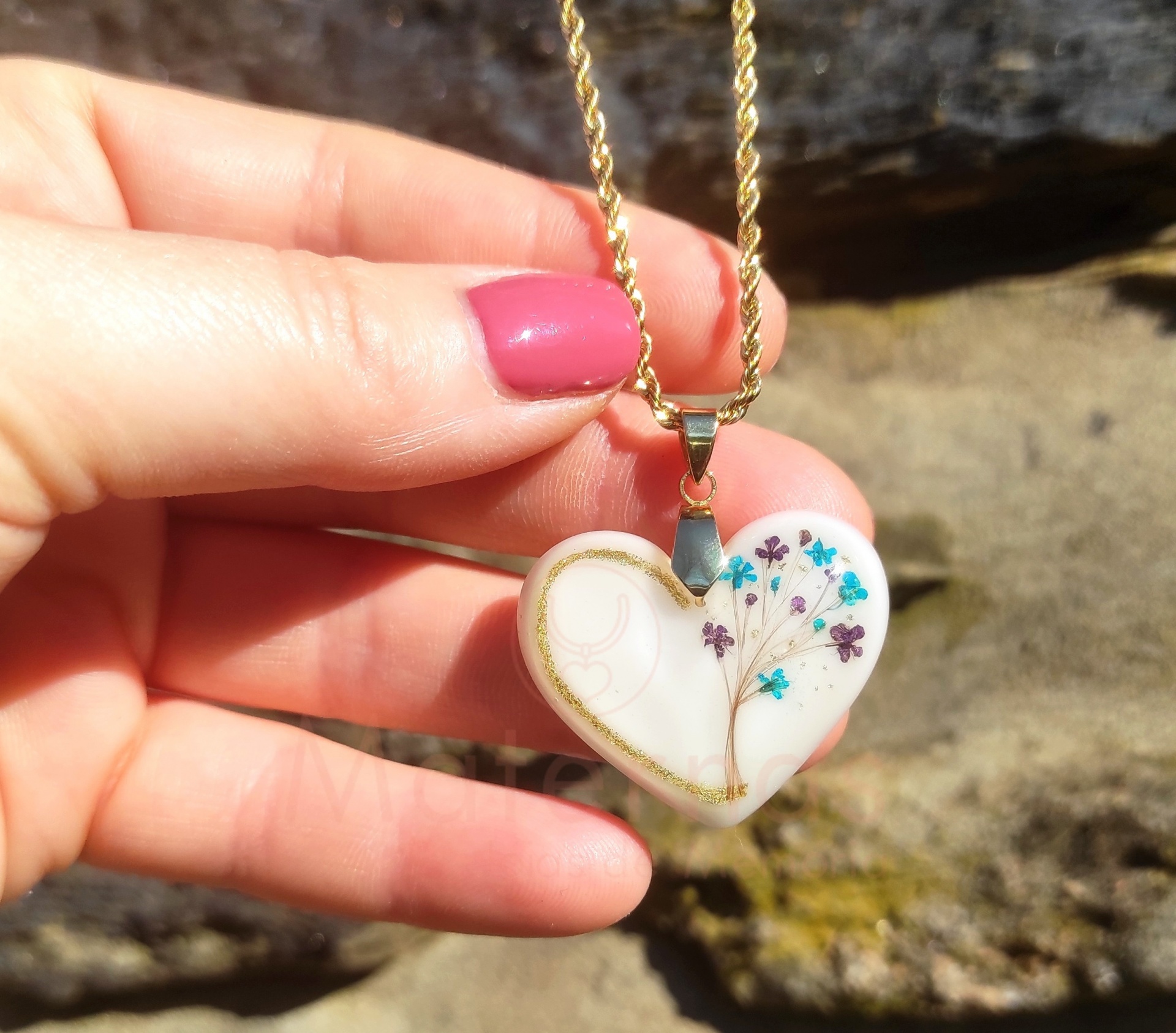 Pendente formato Coração, trabalhado, com materiais a eternizar.