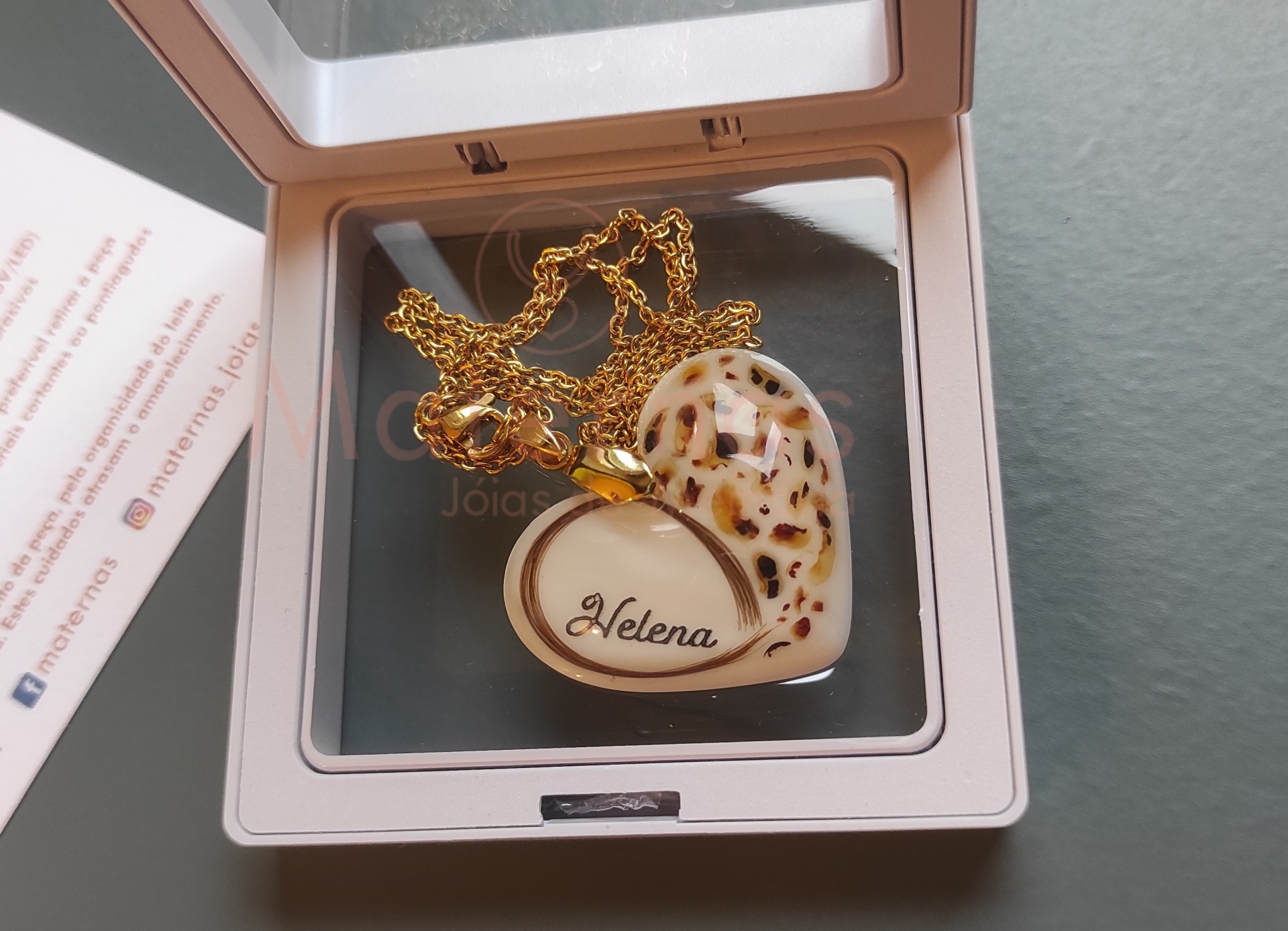 (segue, na sua encomenda, o cartão dos cuidados a ter com a sua Jóia de Memória)