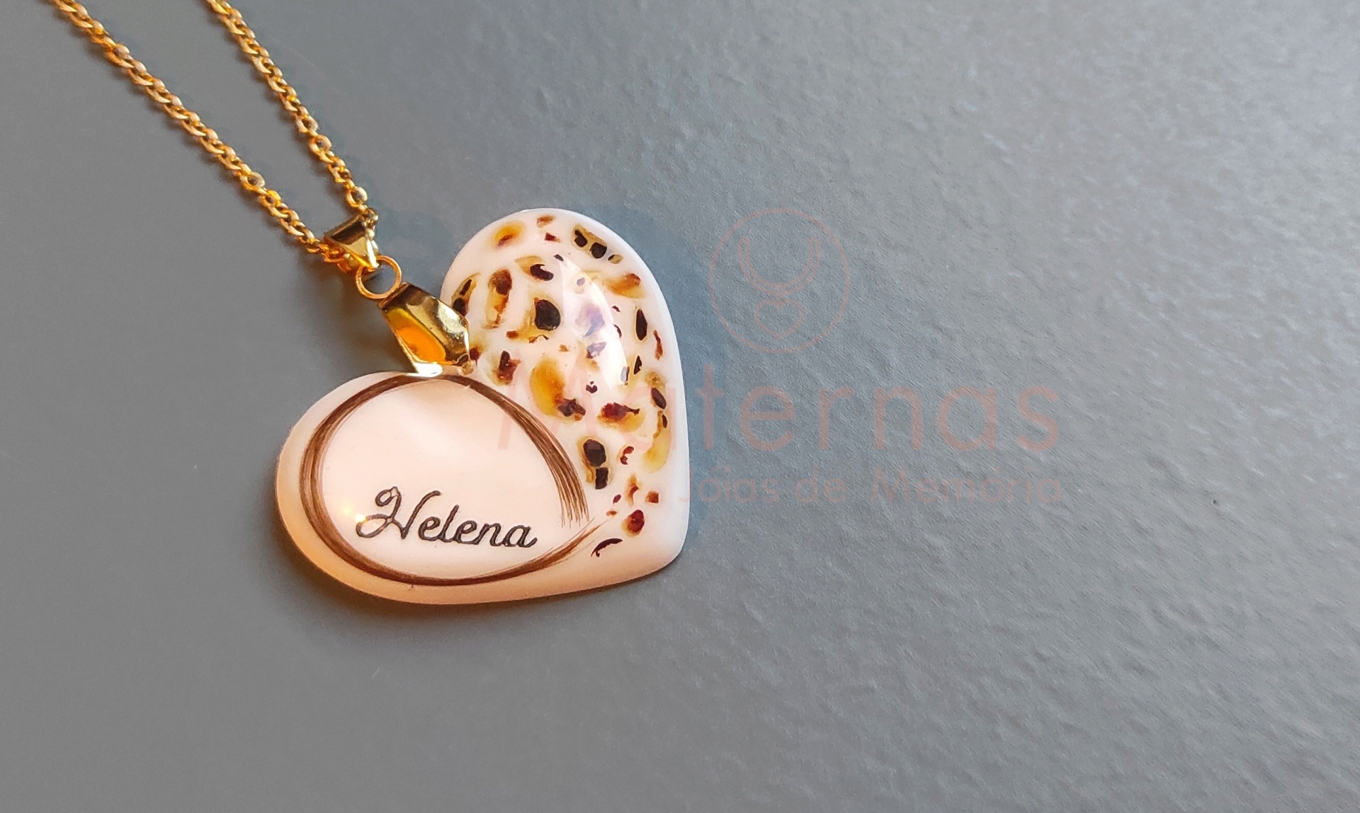 Pendente formato Coração, trabalhado, com colocação do Nome.