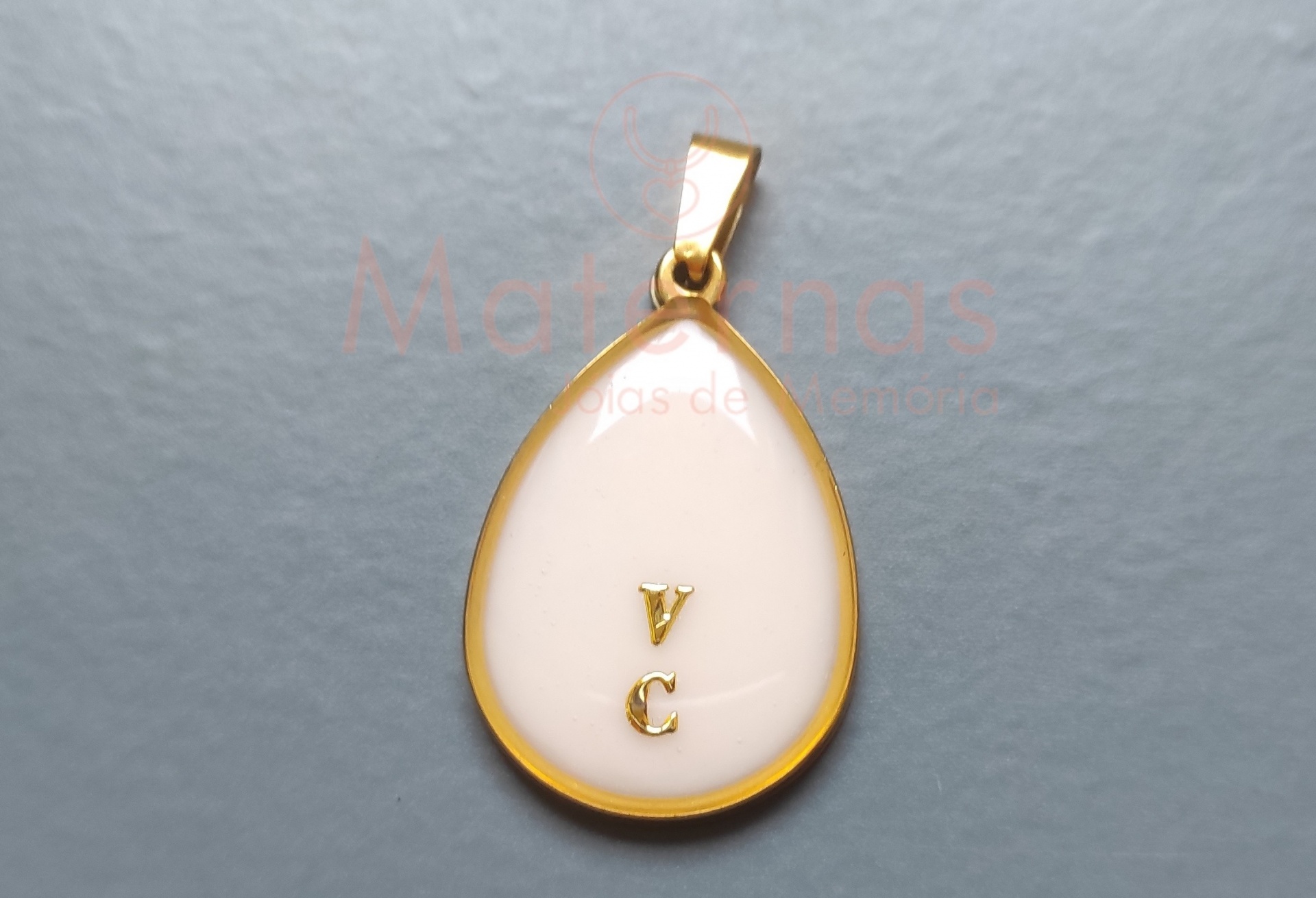 Pendente em forma de Gota, com preservação de leite materno e letra(s) inicial/iniciais do nome.