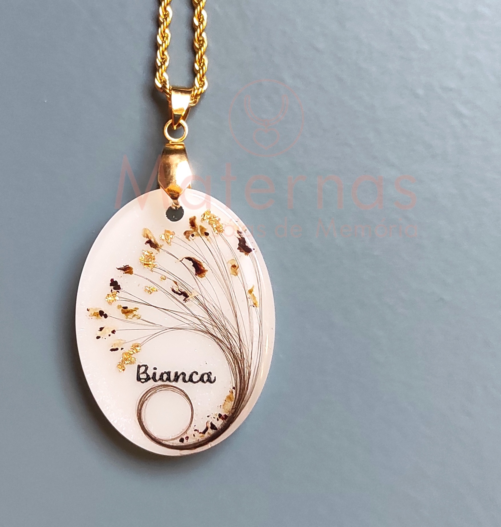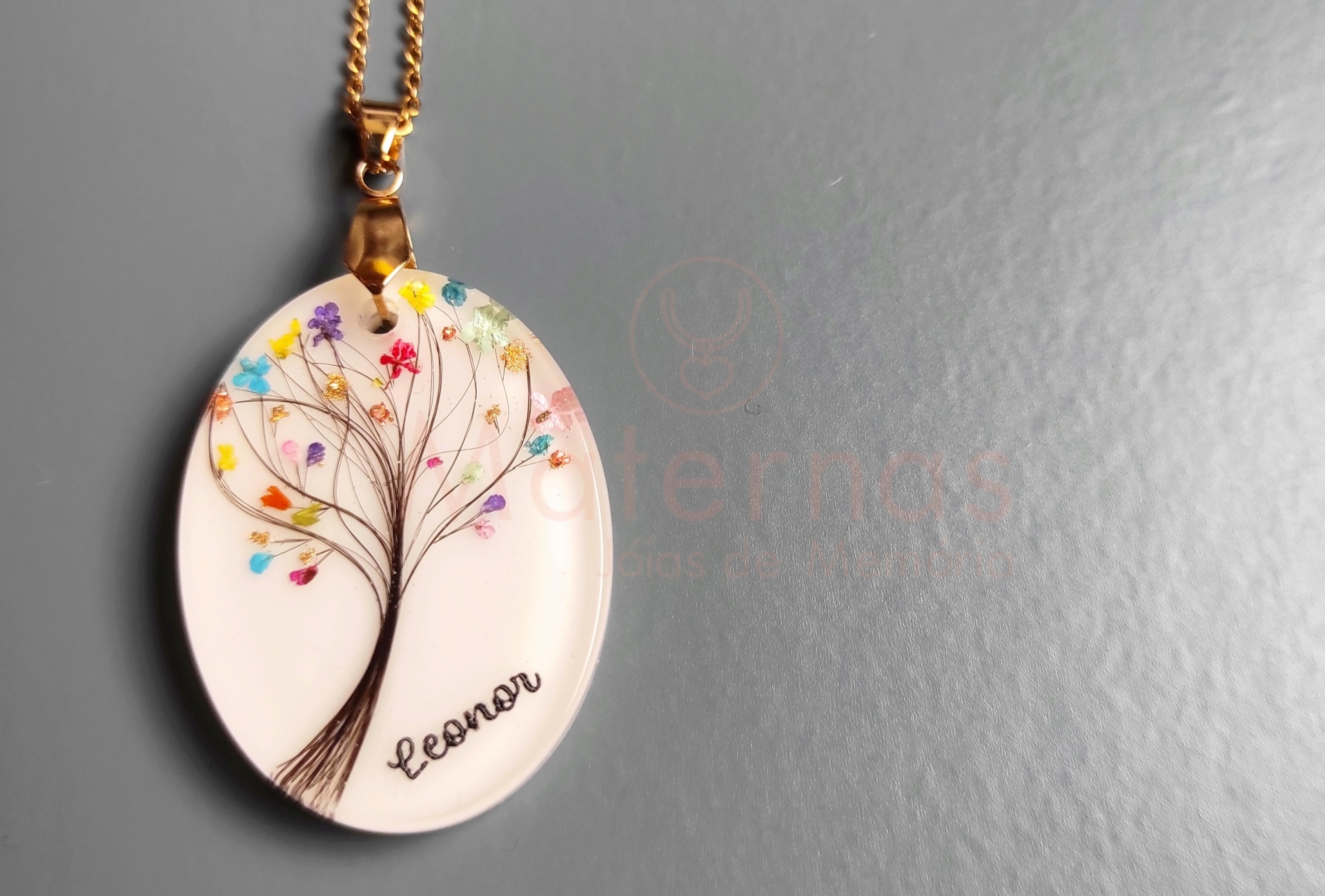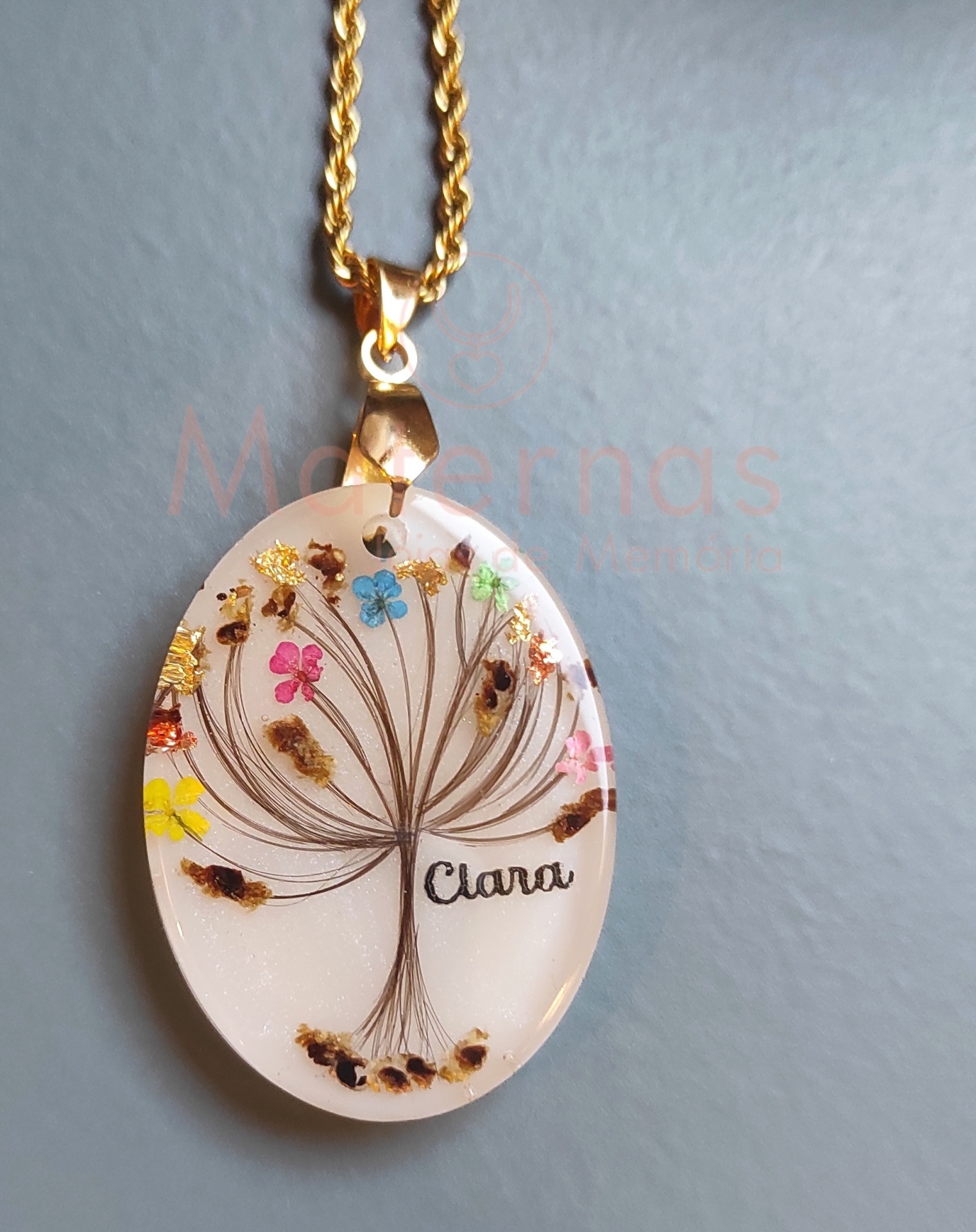 Pendente medalha, trabalhado, do tema Árvore, com colocação do Nome.